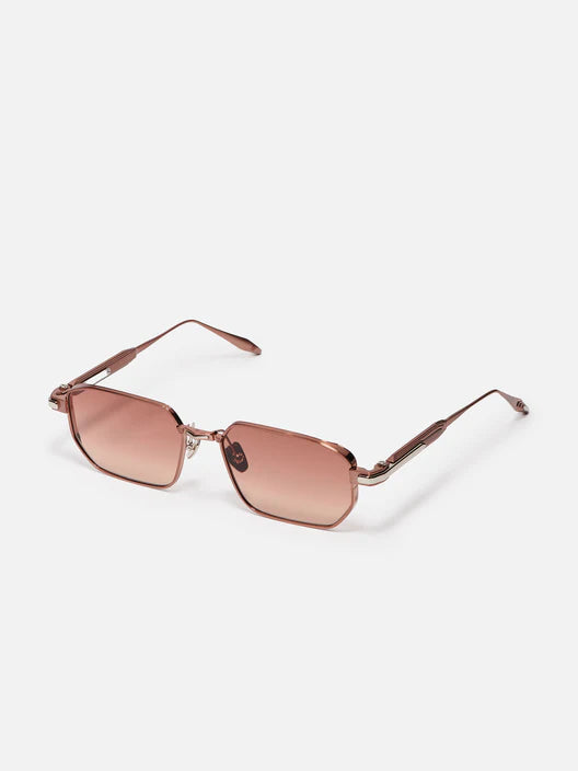 La monture présente un pont projeté, où les plaquettes de nez en titane sont fixées par une extension métallique.Les branches prolongent harmonieusement la structure jusqu’à un embout métallique, conçu comme son prolongement naturel. Travaillées avec des jeux d’épaisseurs et délicatement striées, elles renforcent le caractère affirmé du modèle.